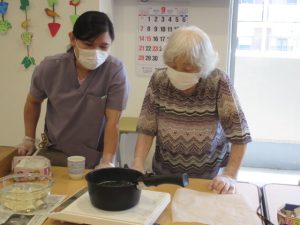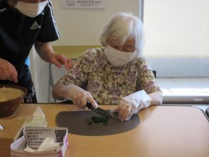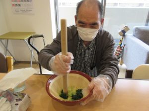 おやつのよもぎ団子ぜんざいも手作りしました。