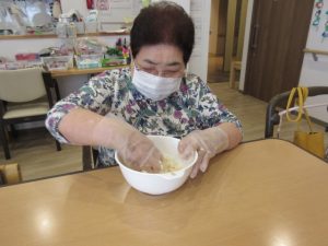 団子粉と混ぜ合わせ、食べやすい大きさに丸めます。
